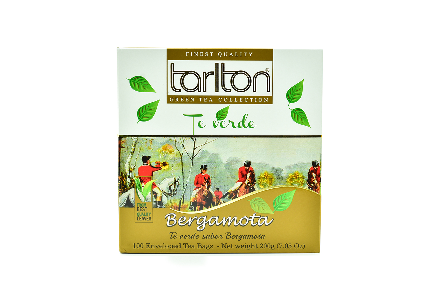 Té verde sabor earl grey con bergamota en bolsas, marca Tarlton, 100 unidades.