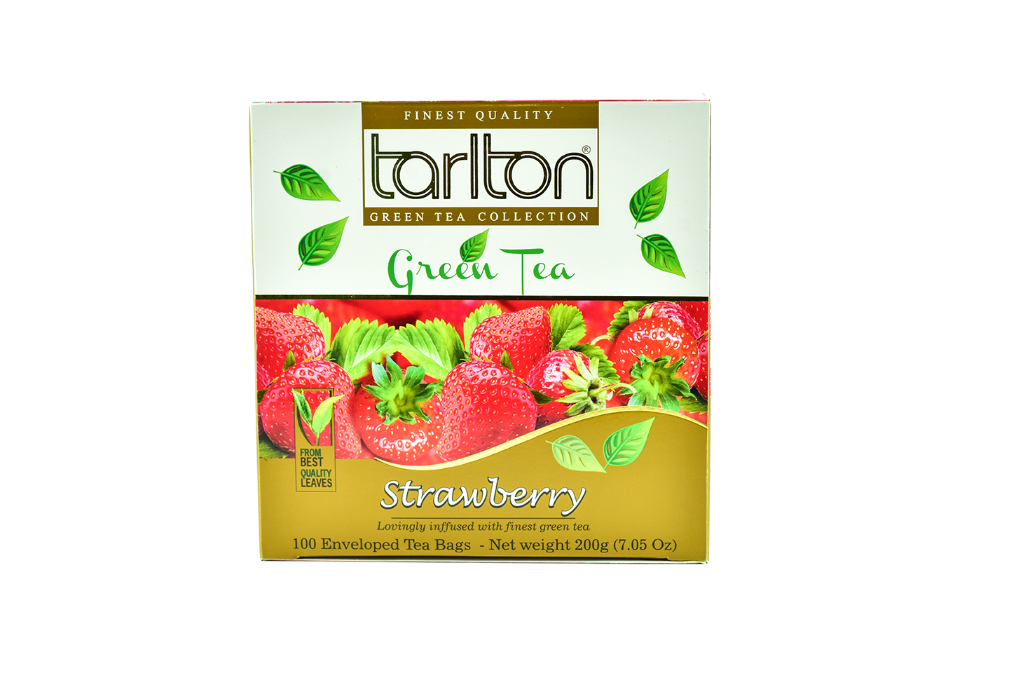 Té verde sabor fresa en bolsas, marca Tarlton, 100 unidades.
